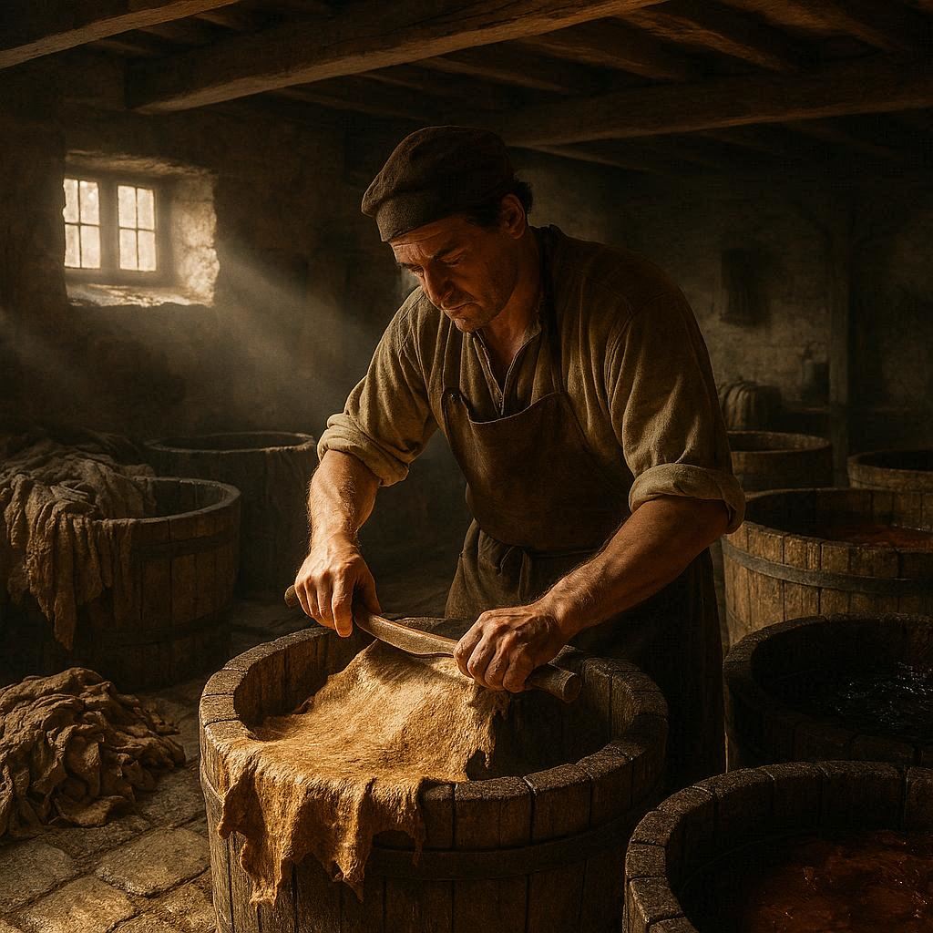 Notre méthode repose sur un héritage technique transmis par les maîtres tanneurs et perfectionné depuis plus de trois décennies en atelier.